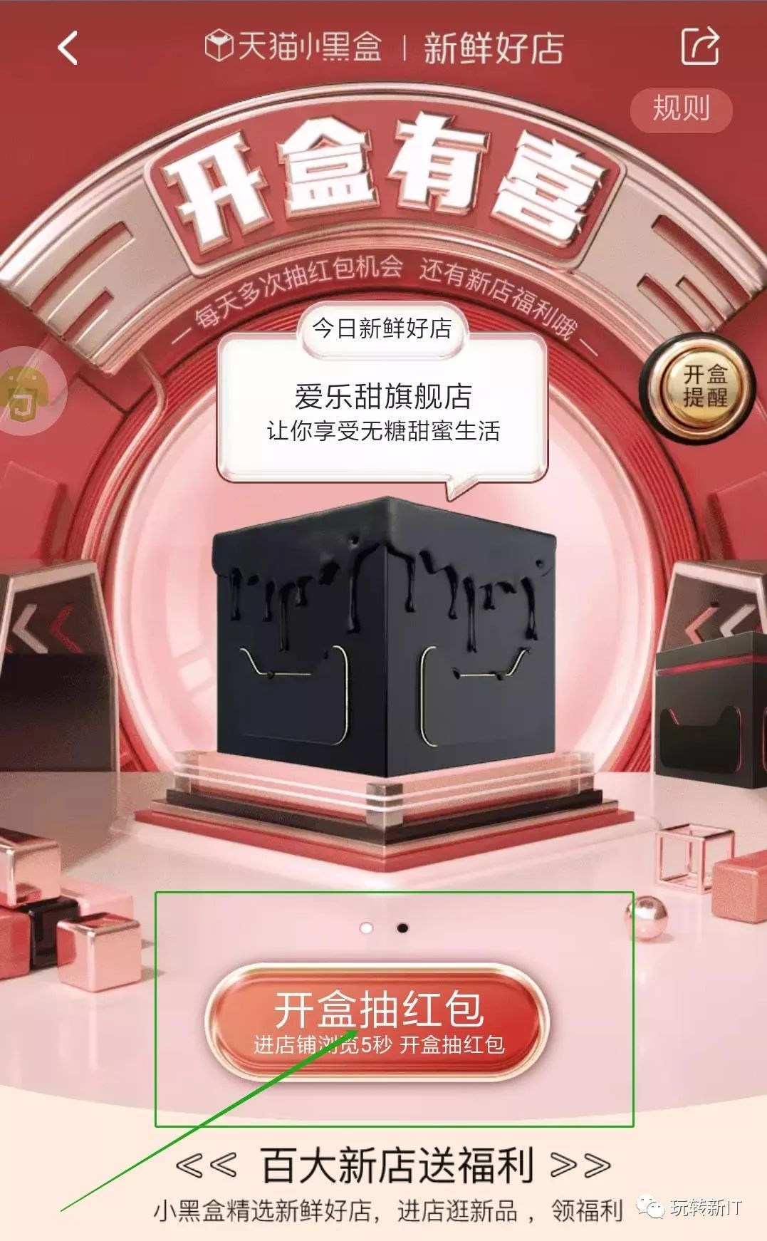 点击“开盒抽红包”,进入页面浏览5秒