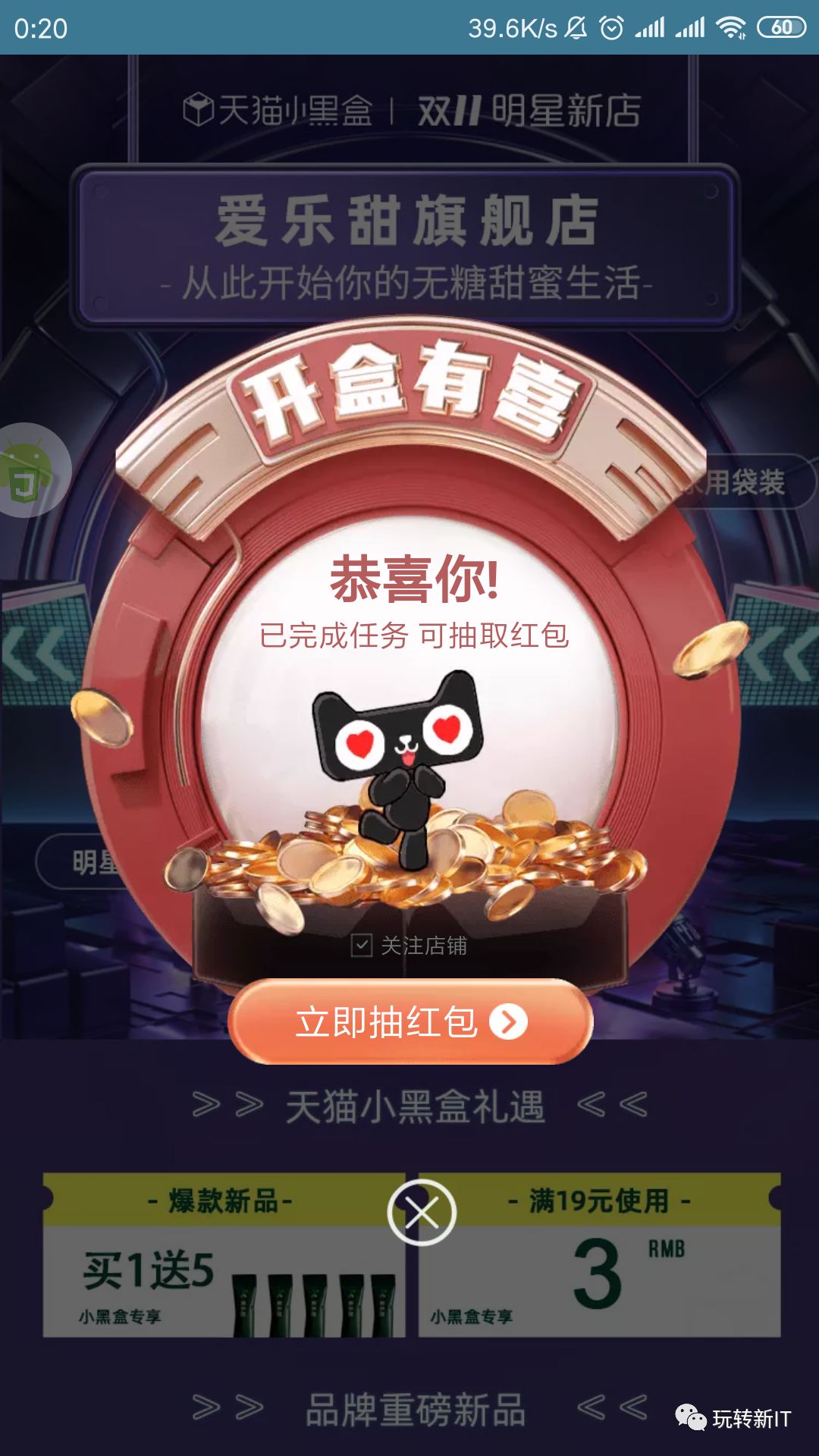 2.淘宝小魔盒开宝箱每天两个小红包,实测红包最低0.07,活动时间为10月21日-11月11日,每天都可以拆红包,红包可叠加。