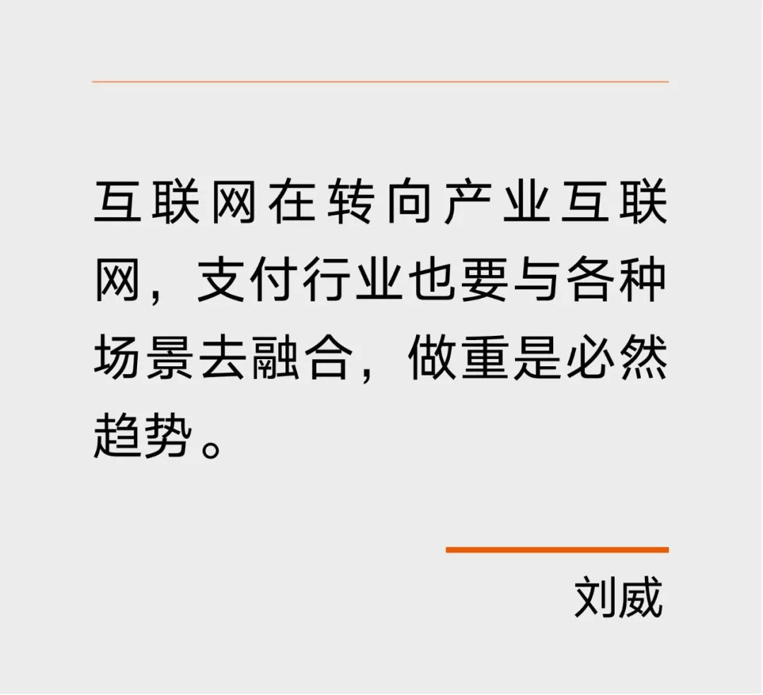 “如果只是更换支付设备价值不大,互联网在转向产业互联网,支付行业也要与各种场景去融合,做重是必然趋势。”刘威说。