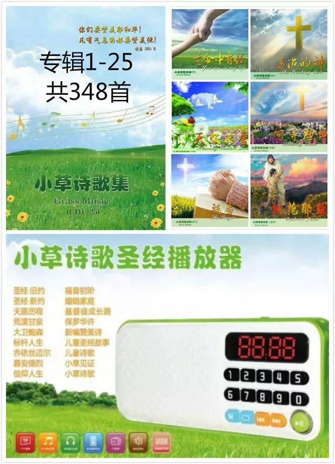 为满足弟兄姐妹们的需要,特开设小草诗歌淘宝网店,内有小草诗歌CD/DVD/歌本/播放器。