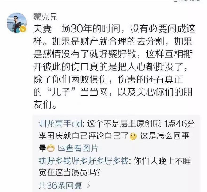 而李国庆也似乎手里也有对方出轨的石锤,当年的模范夫妻的背后何止是一地鸡毛啊!!