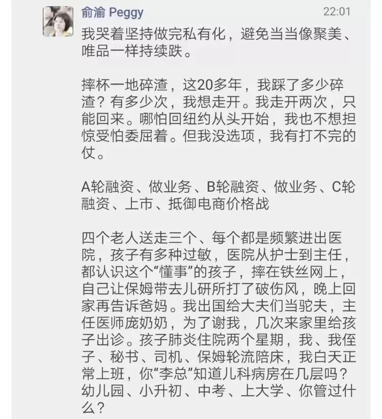 之后俞渝又评论了一条,李国庆在公司也臭脾气,而她还要稳定军心。