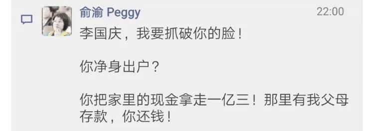 在李国庆的朋友圈下,俞渝评论:李国庆,我要抓破你的脸!
