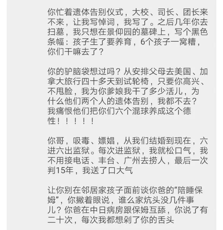 接着说到了俞渝照顾家庭和老人,就连写李国庆母亲的悼词都是俞渝写的。而且李国庆的哥哥xd,嫖娼、进监狱等后续处理都是俞渝在做。