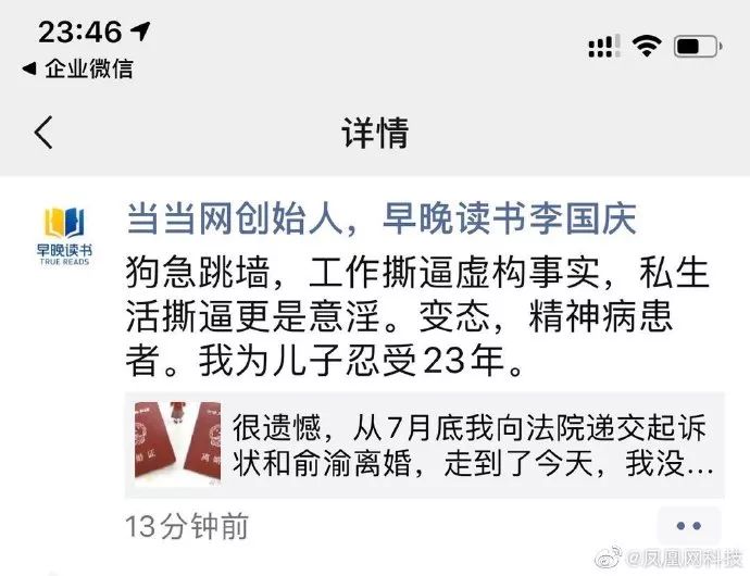 事情到这,李国庆这位联合创始人的处境已经完全清晰,如他所说为真的话,那李国庆这个大男人可挺委屈啊!