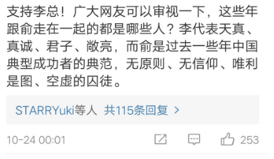 时间曝光在另一位大老板出事之后,爱打嘴p的李总也发表了个人言论。