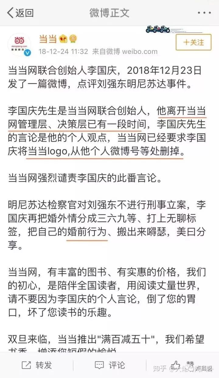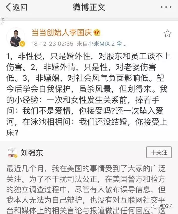 刘强东“明尼苏达事件”爆出后,李国庆第一时间“赶到现场”,发表了如下言论: