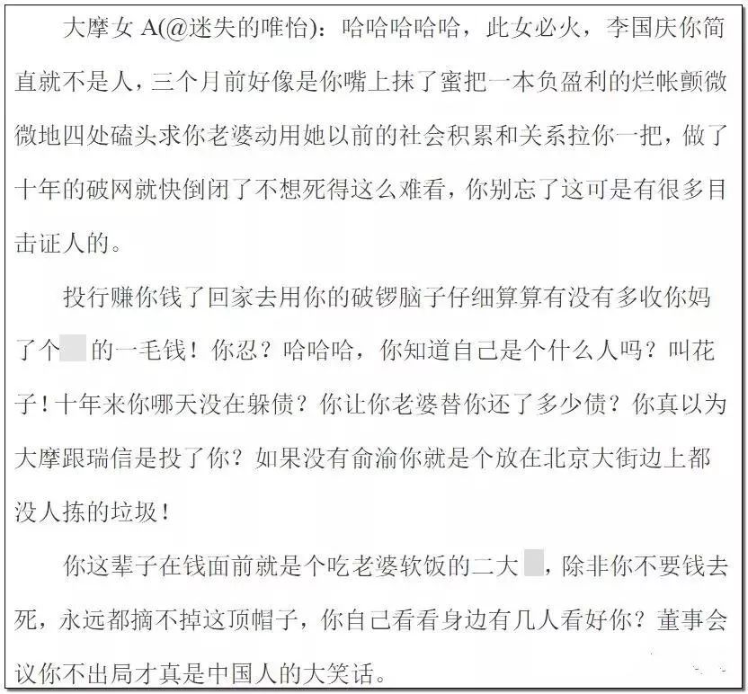 大摩女嘲笑李国庆:“吃软饭,没管理知识,不懂得资本运作,如果没有俞渝,就是个放在北京大街边上都没人拣的垃圾。”