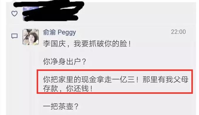2、李国庆拿走家中1.3亿元存款,包括俞渝爸妈的存款。
