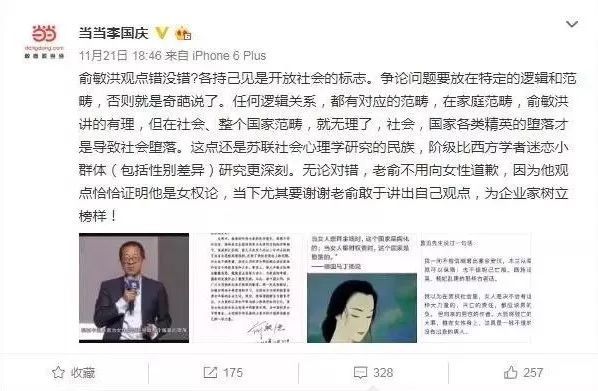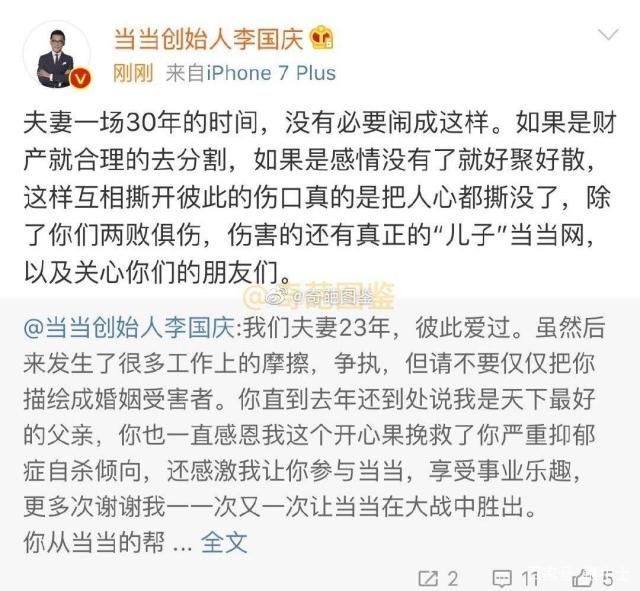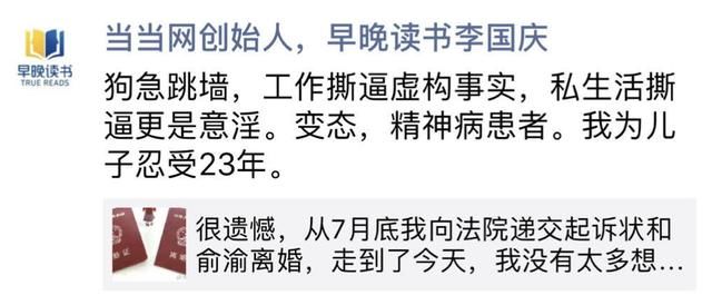 哪知道看完这波卖惨,当当网董事长兼CEO、前妻俞渝突然在李国庆的朋友圈下长篇留言,爆出大量狗血细节,号称:“我要抓破你的脸!”