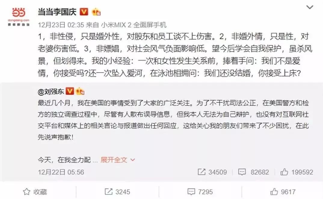 刘强东姿态潇洒地跟老婆道个歉,措辞完美,利索给自己洗白,就美滋滋地等着翻篇了。