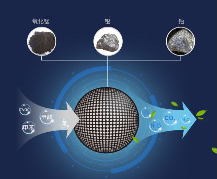 这是一种高效催化剂,吸附甲醛和异味,还可以把甲醛催化分解为二氧化碳和水。