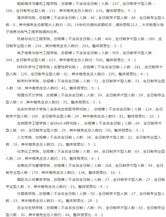 总结:从招生人数、报录比、分数线我们可以看出,比较热门的学院:电院,生科院,安泰院,设计院等几个学院竞争异常激烈。小伙伴们选择专业的时候,一定要查这个专业的实际录取人数,和报录比。