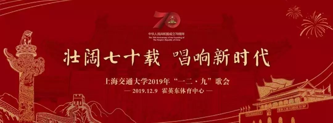 为纪念“一二·九”学生爱国运动八十四周年,勉励广大青年学子铭记历史、缅怀先烈,继承优秀的革命传统,践行社会主义核心价值观,树立成才报国的远大理想,肩负起时代赋予的青年责任,特举办“壮阔七十载 唱响新时代”上海交通大学 “一二·九”师生歌会。