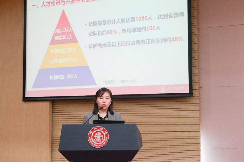接下来,三位负责人陈菡、曲欣、刘婷分别代表党委教师工作部、教师发展与培训中心、人才引进与开发中心介绍了各自部门的职能与业务,并对重点政策做了深入解读。