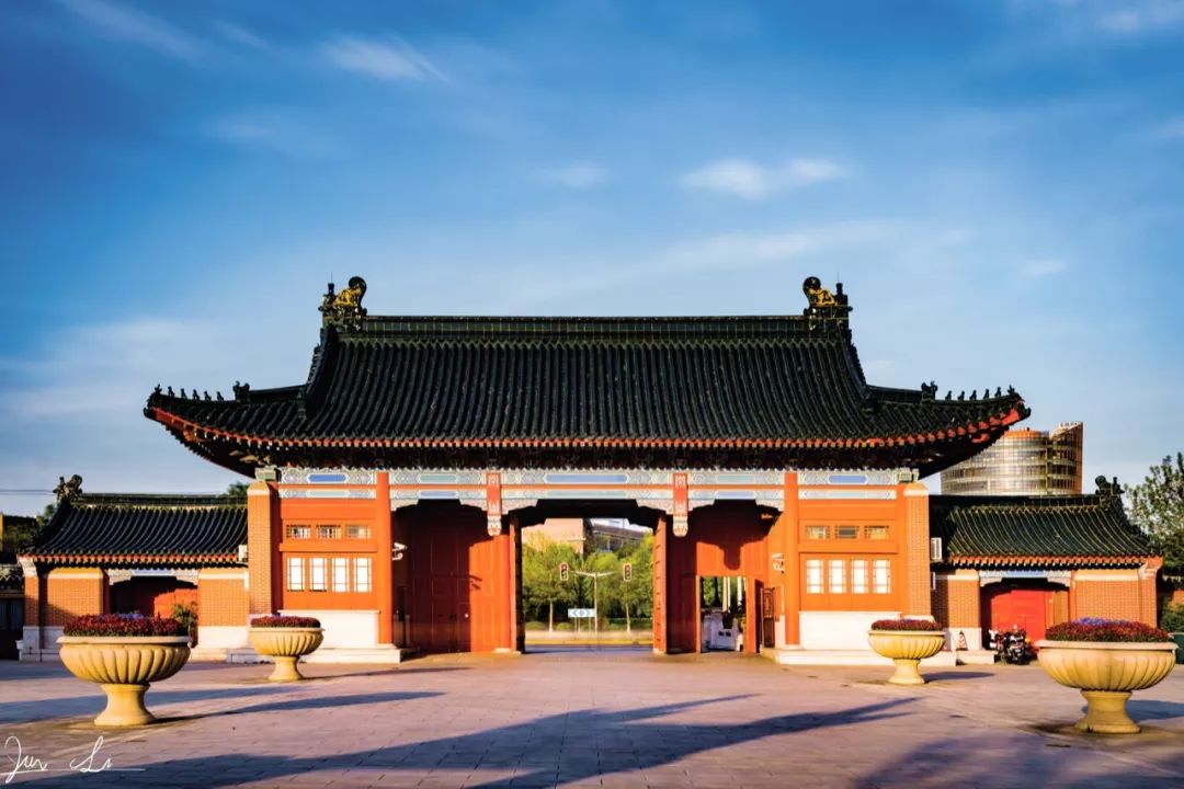 朱门碧瓦,交通大学庙门是一座模仿京城宫殿门式的建筑。在交大也流行一句话叫做:一如庙门深似海。