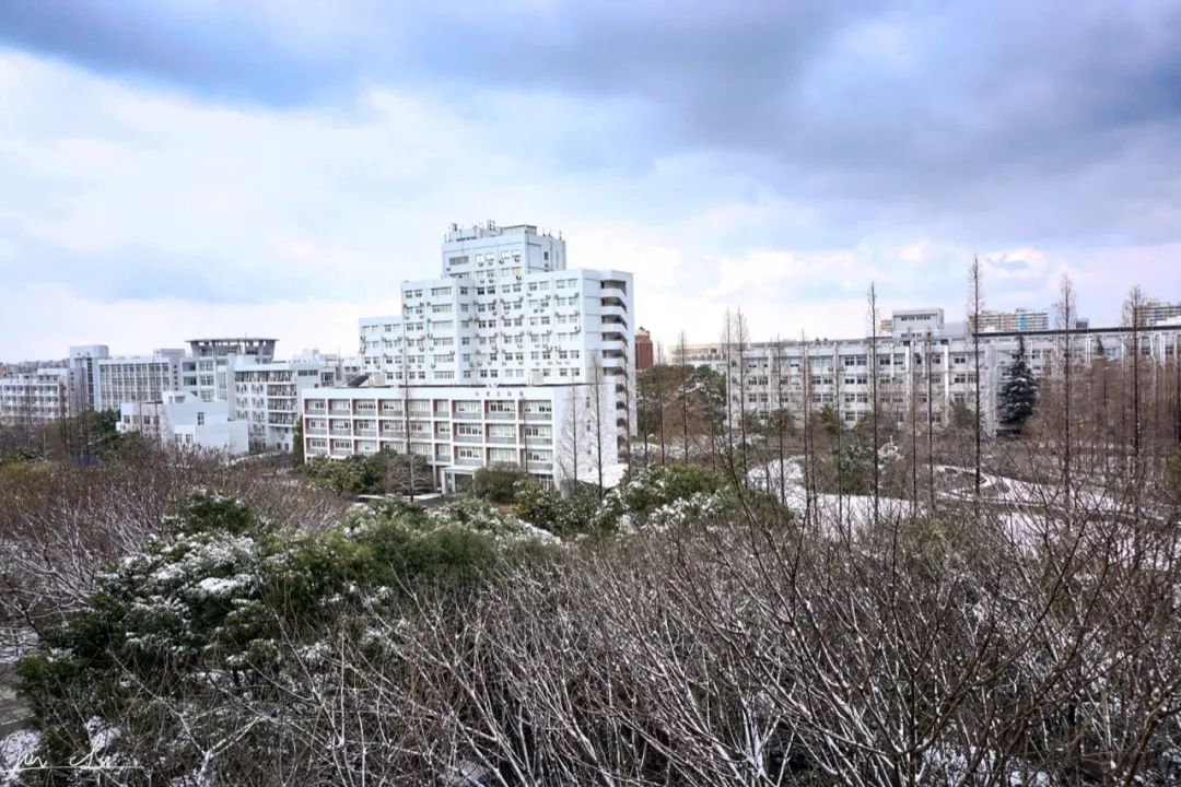 这张图是我看到小伙伴菜少白的一张图之后,去找的机位(电院楼里面)手拿着相机伸出玻璃窗拍摄到的。