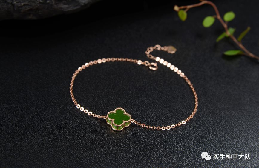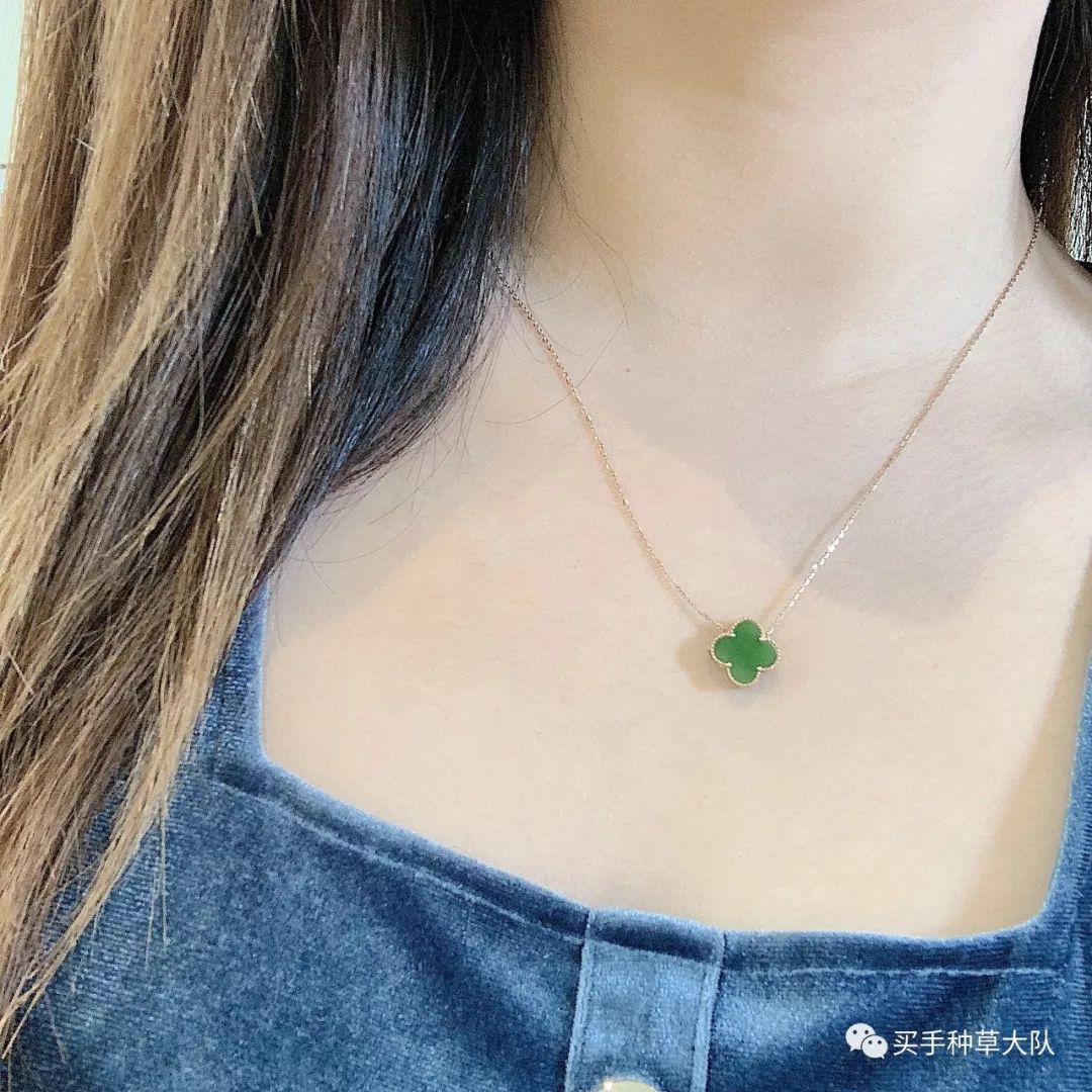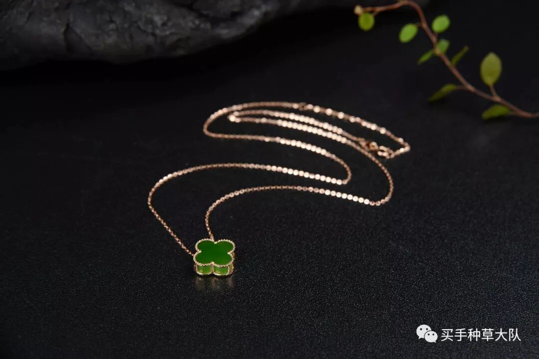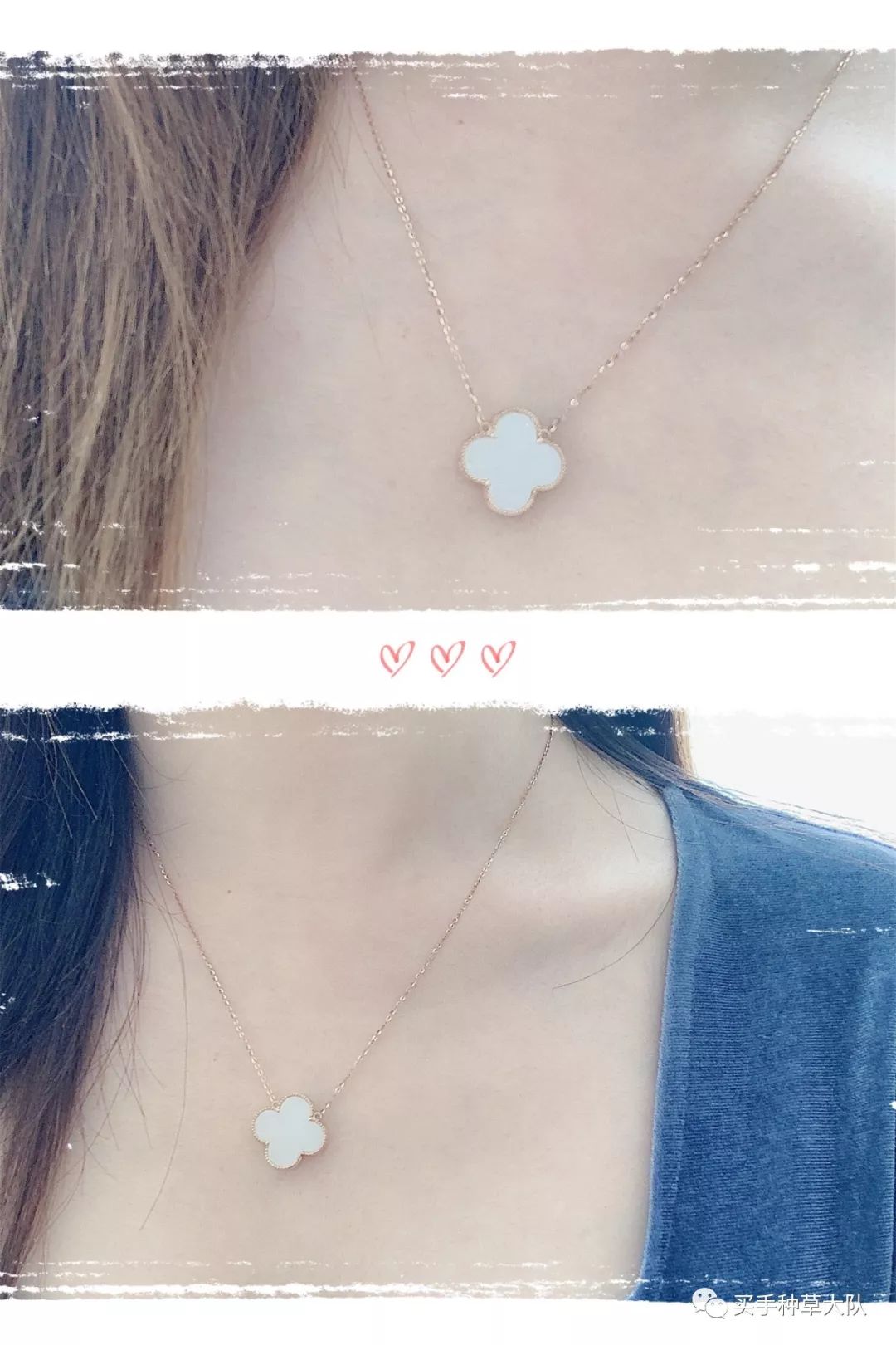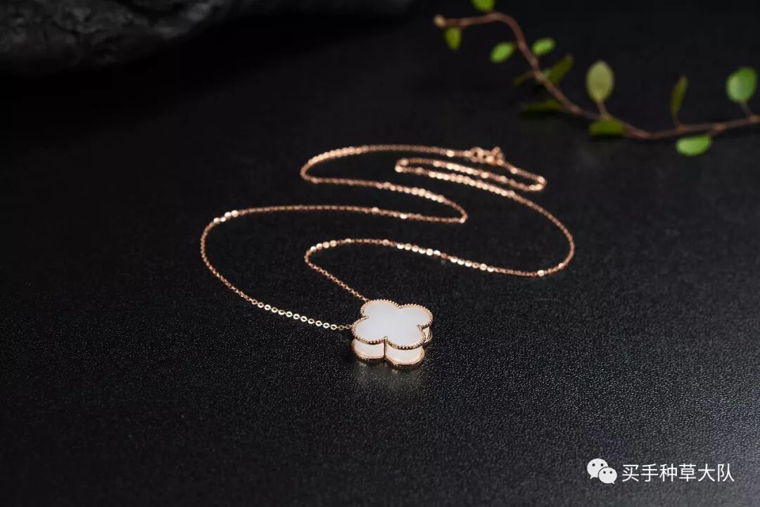 相比于大牌白贝母材质,这款四叶草吊坠更符合国人气质。主要部分为珍贵的羊脂白玉,是新疆和田玉中的上品。其色白如羊脂,玉质油润细腻,光泽温润,呈半透明状,价格只有十分之一