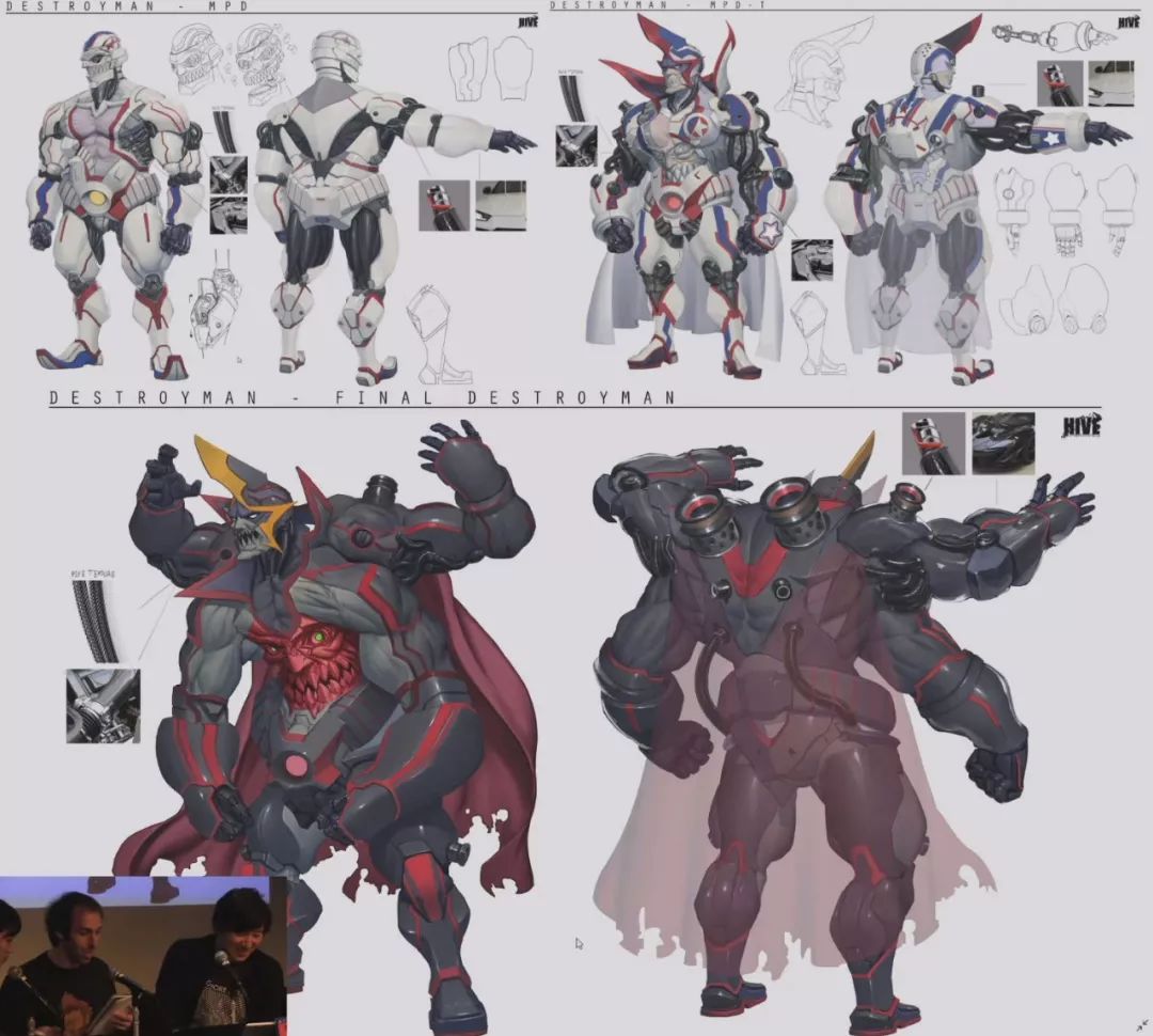 此外直播中还介绍了一位名为Destroyman,有着多阶段变身的反派角色,这一人物由一名精于美漫同人创作的泰国艺术家设计。制作人须田刚一甚至开玩笑说最终形态会留到下一部作品,也不知真假。