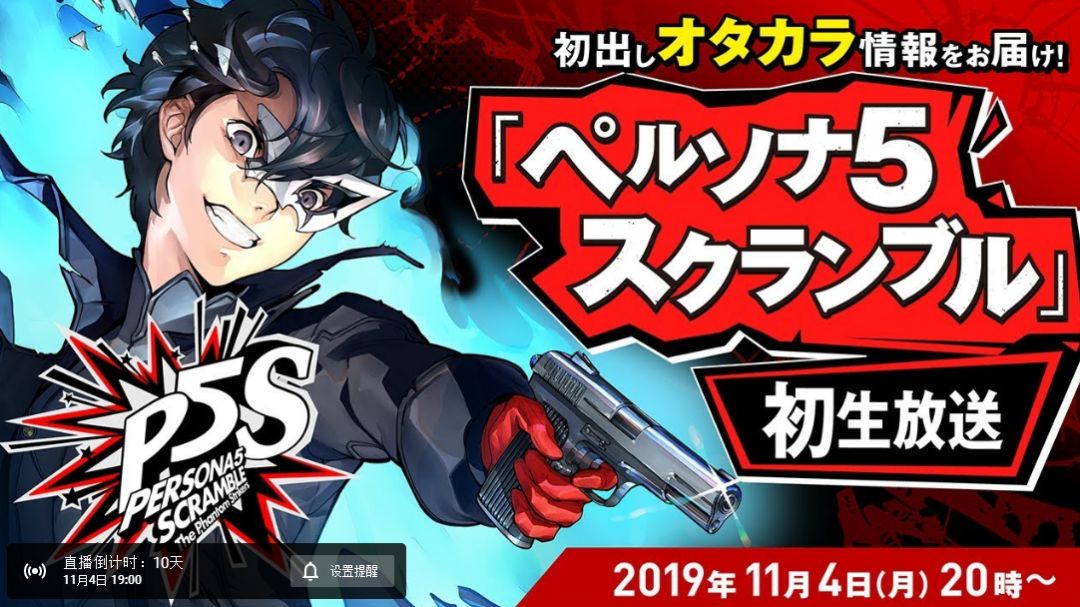 《P5S》预计将于2020年2月20日推出,这一日期正好与原作的威力加强版《女神异闻录5R》中文版同一天发行,目前《P5S》暂未公布中文消息。