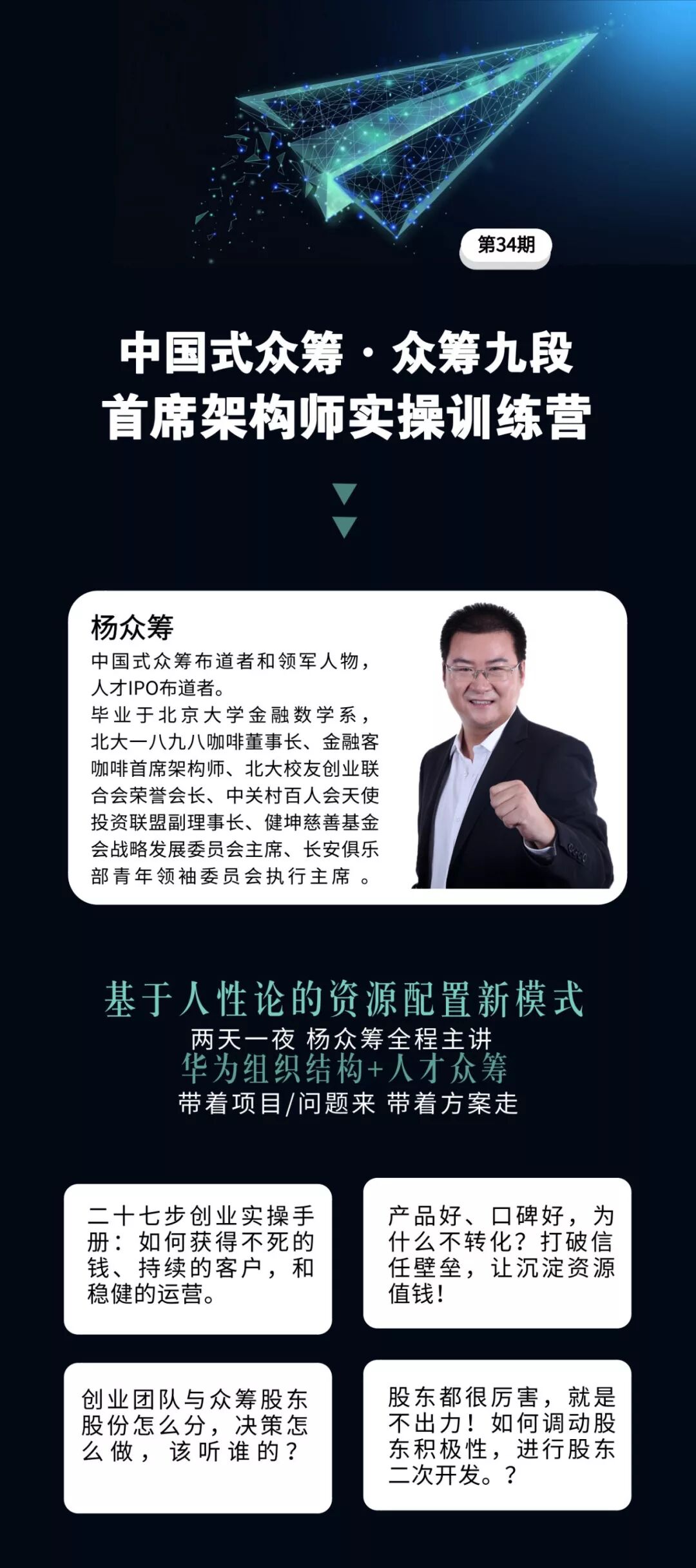 报名中国式众筹·众筹九段·首席架构师培训班第33、34期