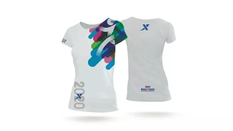 参赛服整体采用不对称风格,利用厦马元素构成羽翼图形,灵动清新的色调,又带来展翅搏击的气质,同时用流畅的线条勾勒,赋予向前的冲击力,传递奔跑的力量;对角线位置,则用跑道构成2020,具有年份纪念意义,又与马拉松主题和谐呼应;后背则是渐变色的厦马标签,兼具时尚与运动感。