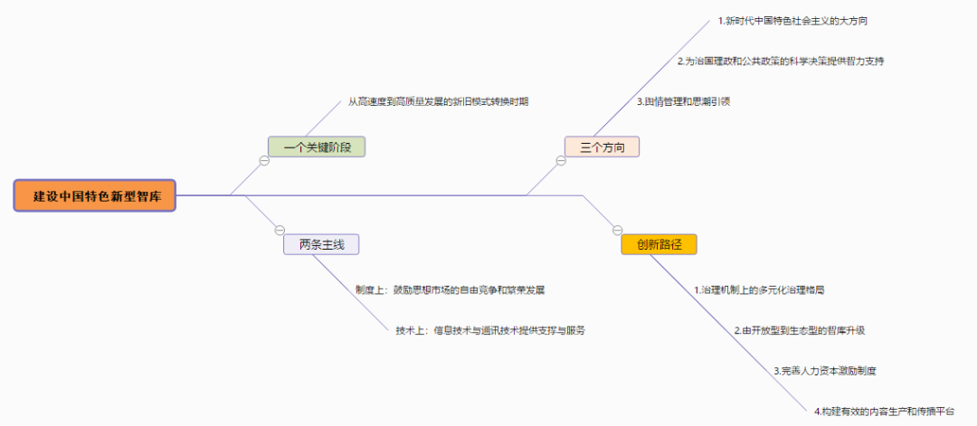 图2 新型智库建设的基本思路图片来源:西泽研究院 在建设中国特色新型智库的创新建议上,总体的思路可以归纳为“一、二、三、四”。一个关键点:抓住当前我国所处的关键阶段,从高速度到高质量发展的新旧模式转换时期,或者所谓的后发展阶段。两条主线:一条是在制度上,多元社会的形成,需要鼓励思想市场的自由竞争和繁荣发展,才能形成所谓的创新型国家;一条是在技术上,信息技术的发展,为平台型智库的快速发展提供了强大的支撑,研究人员可以利用人工智能、大数据等技术更有效的捕捉信息和观点,同时通讯技术的发展可以更便捷的组织来自各地、各行业的研究人员一起进行工作。三个方向:一是新时代中国特色社会主义的大方向,基本的目标是满足人民群众对美好生活的向往,在这个方向上新型智库承担着引领建设现代型社会的使命,推崇以人为本的发展理念,才能让人们从唯经济论的单一意识中走出来,也注重自身精神文明的建设;第二个大方向是为治国理政和公共政策的科学决策提供智力支持,这是建设新型智库的初心和本意;第三个大方向是在舆情管理和社会思潮引领中发挥重要作用,在国家间的话语权争夺中制造先进的“思想武器”,抢占理论制高点。 “四”是在智库建设的具体创新路径上,主要需要做四方面的工作。第一,在智库的治理机制方面,形成多方参与的多元化治理格局,不能造成“一股独大”的权力失衡局面,以防止单个利益方对智库独立性的干扰。在智库发展较成熟的国家,智库的资金来源方(可以看作股东,但一般是捐赠)与智库的学术委员会保持隔离,保证智库研究和思想产品的独立性和公正性,否则就会异化为附着在某个官方机构和利益集团的附庸。同时,只有研究和思考自由才会有真正的思想产品。第二,利用日新月异的信息通讯技术和网络媒体平台,构建开放式的平台型智库,并逐渐向生态型智库升级。当前跨界和跨领域的问题越来越多,靠单一领域的专家无法进行科学诊断和决策,需要组织来自各行各业尤其是来自实务界的人士来参与对某个课题或者政策的研讨,这需要智库充分发挥信息和数据整合,知识和思想集成的作用,所以新型智库首先是一个智力资源和知识资本的运作平台,同时也是一个内涵“思想市场”的生态体系(平台内外的思想竞争和交互)。第三,完善人力资本激励机制,充分调动社会有效的智力和思想资源,形成主流话语通过平等竞争引领社会思潮的局面。当前在制定公共政策时,往往面临复杂而又专业的问题,同时也会面临一些非专业媒体为了获取流量而进行恶意误导的情形。面对这些挑战,只要没有触犯法律,就不应该通过国家行政体系压制,而是通过有效的激励机制动员正确的思想和理念充分参与竞争,通过“市场化”的方式引领主流思潮。第四,构建有效的内容生产和传播平台。过去智库的传统模式是只对公共决策部门负责,导致科学正确的常识性知识无法在社会大众传播,容易被其它媒体型机构误导,给社会预期和舆论管理带来压力。新型智库应该扩大智库产品的价值链,不仅要对“上”负责,还要通过转换语言体系和话语口径,借鉴当前内容产业的生产和传播模式,通过更加通俗易懂的语言和场景鲜明的叙事向社会大众传播,通过平等竞争来引领社会思潮和主流价值观。 五、结论 中国的智库最近十几年取得了较大的发展,但与自身的经济地位相比与发达国家还存在较大的差距。在一个意在构建创新型发展模式的国家里,鼓励和支持各类智库的建立和发展以形成自由竞争和较为繁荣的思想市场至关重要。尤其是我国当前处于中国特色社会主义市场经济新时代的开启阶段,同时处于从高速度到高质量发展模式的转换阶段,公共政策决策的科学性、民主化和透明度至关重要。我国已不再是改革开放初期底子薄、增长慢和发展模式单一的简单初级阶段,现在已经初步形成了复杂而又精致的现代经济体系。在这个体系中进行公共政策决策,一定要尊重现实的复杂性和不同行业的专业规律,在政策实施前一定要多方论证,多次模拟测试,做好社会预期和舆论管理,防止政策“一刀切”对大规模复杂经济体的扭曲与冲击。在此过程中,鼓励各行业、各领域的智库充分参与至关重要,它们不仅能够提高政策的科学性、合理性和透明度,还能作为政策冲击的缓冲带,让社会民众的各方意见和不满在智库形成的思想领地和市场中表达和释放。 因此我们需要注意到,新型智库在当前的“百年未有之大变局”中发挥着至关重要的作用。党的十八大提出要大力发展中国特色新型智库并非空穴来风,而是建立在深刻而又全面的战略性思考之上。新型智库能够有效整合社会智力资源解决复杂现实问题,能够为公共政策实施进行动态实时的“压力测试”,能够构建顺应媒体传播时代的社会思潮引领和管理体系,能够更友善、更有温度的向世界讲好和平崛起的中国故事等。新型智库的“新”体现在组织形态、运营机制、产品体系和传播模式等四个方面,而建设新型智库的总体思路可以归纳为“一二三四”:新旧动能转换期的“一个关键点”,社会鼓励和技术支撑的“两条主线”,以人为本、科学决策和思潮引领“三个大方向”,多元治理格局、生态型运行模式、市场化知识资源激励体系、内容型生产和传播平台“四个创新