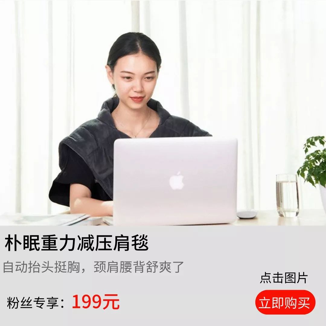 我还试过穿弹力矫正带,勒得那叫一个难受,而且据说有副作用,不敢再用了。 后来同事小吴淘到了一个好东西—— 重力肩毯 。 重力减压肩毯 | 远离低头驼背 颈肩不适