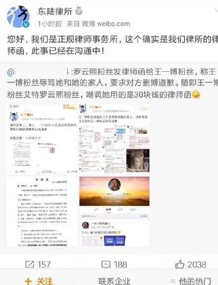 最近罗云熙虽然一直保持佛系,但他的事儿还挺多的,这几天他的粉丝与王一博粉丝一直在网上battle,今天还上升到罗云熙粉丝发律师函给王一博粉丝,告王一博粉丝骂她家里人,后来有网友指那张律师函是某宝花钱买来的~但接着却有律所出面认领了这份律师函……看得出双方粉丝撕得很是火爆啊~只是粉丝团战,难免给败坏自家偶像的路人缘,所以还是奉劝大家都悠着点吧!