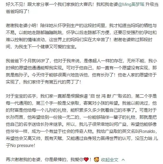 #奚梦瑶生子#这个话题已经在热搜上个被刷爆了,所以表贝们都受到风声了吧~遮遮掩掩几个月了,今日下午,何猷君亲自在网上发文表示,奚梦瑶为他生下一个儿子,是赌王何鸿燊的第五代长孙,赌王为这个孙子取名“何广燊”。长长的一段文字,看得出何猷君喜得爱子抑制不住自己的兴奋。而瓜众们得知消息后都惊呆了,感叹这两人的速度实在是快,推算下来,今年1月奚梦瑶就已经怀孕了,妥妥的奉子成婚无疑了。