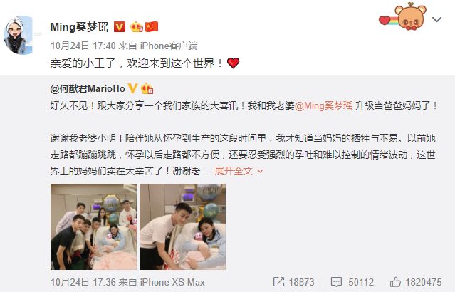 随后,奚梦瑶也转发微博,简简单单的一句:亲爱的小王子,欢迎来到这个世界。
