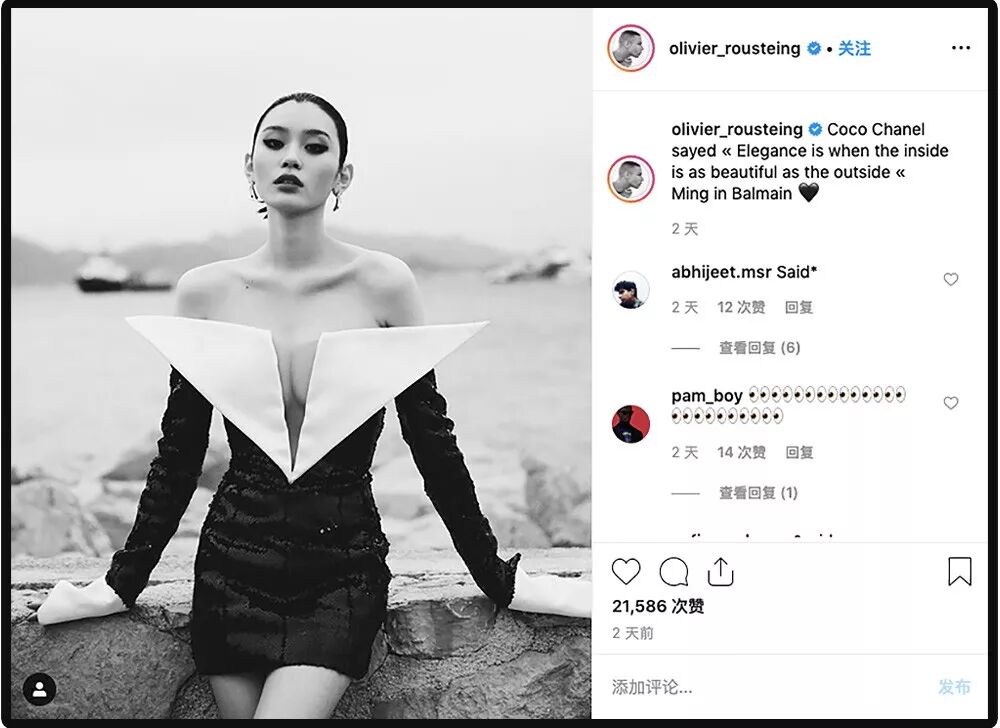 今年五月时,奚梦瑶走上了戛纳电影节的红毯穿着BALMAIN的礼服,法国大牌的BALMAIN的设计师Olivier Rousteing对她赞不绝口,连发两条Instagram!