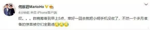 据悉,5月13日,何猷君发微博承认准备求婚女友奚梦瑶,还透露为了这个求婚的惊喜从晚上一直筹备到清晨五点。晚上八点,终于有网友拍到男主角在求婚现场露面。一身白色衬衫简单帅气,与旁边的工作人员边走边聊,似乎是在确认求婚现场的一些事情。