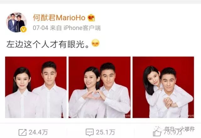 后,何猷君马上发微博否认自己跟空姐说过奚梦瑶怀孕,但并没有否认怀孕这件事。