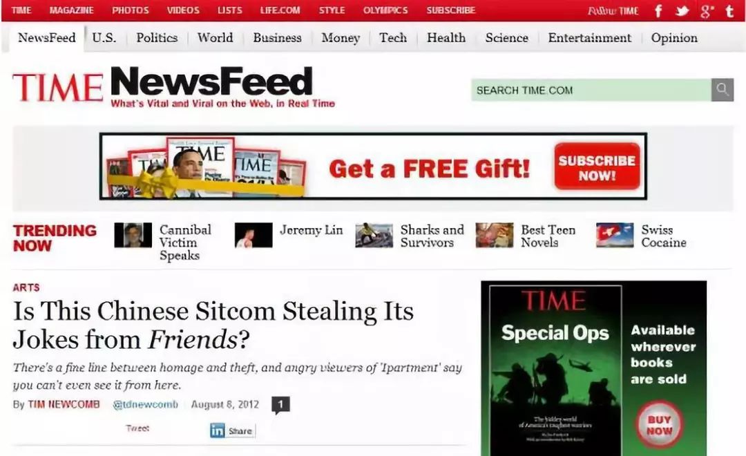 美国时代杂志也点名《爱情公寓》的“致敬”,就差把抄袭两个字写在了明面上。