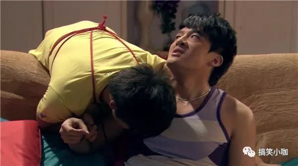 后来张伟睡关谷的房间,整的吕子乔和关谷都睡不安宁,他还是睡不着,后来又梦游了,被吕子乔捆了起来,然后就是这幅场面。