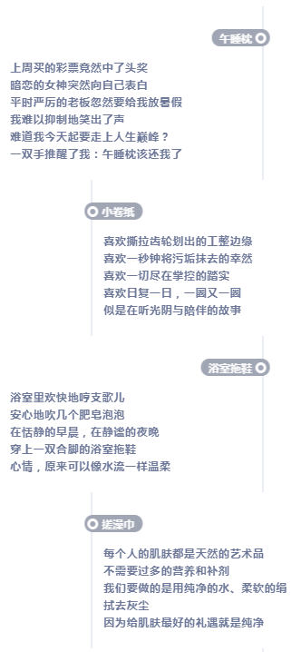 看完网易严选的文案,真的好喜欢,特别喜欢那个午睡枕的文案。这种用故事来引出产品,既不突兀,又很自然,还很温暖。