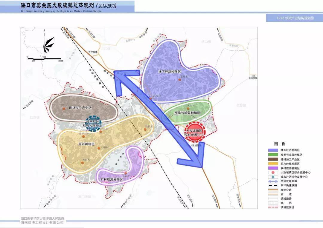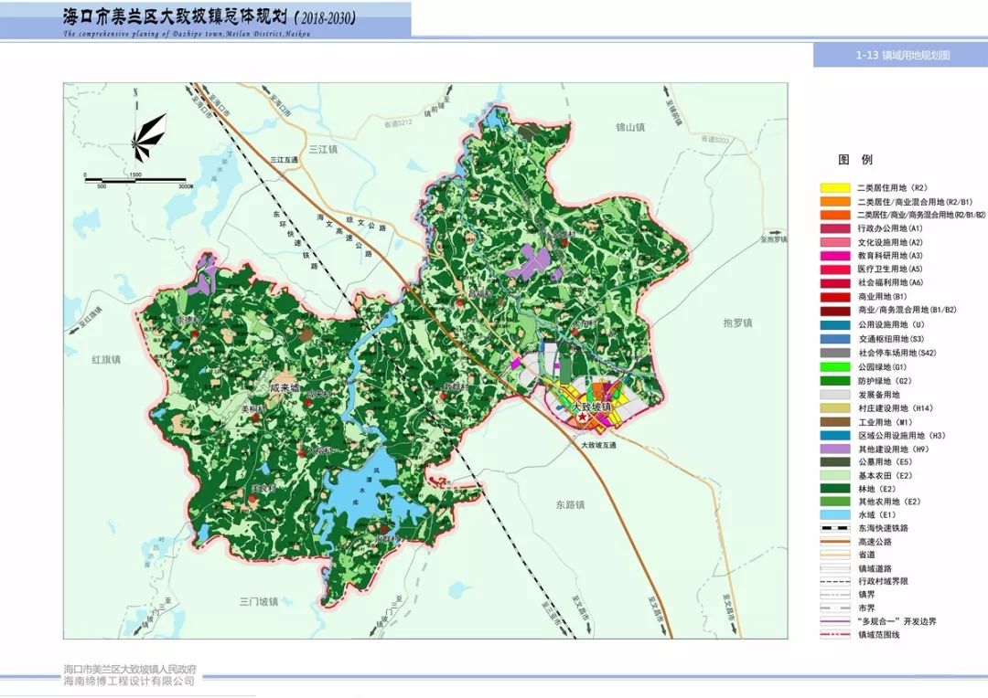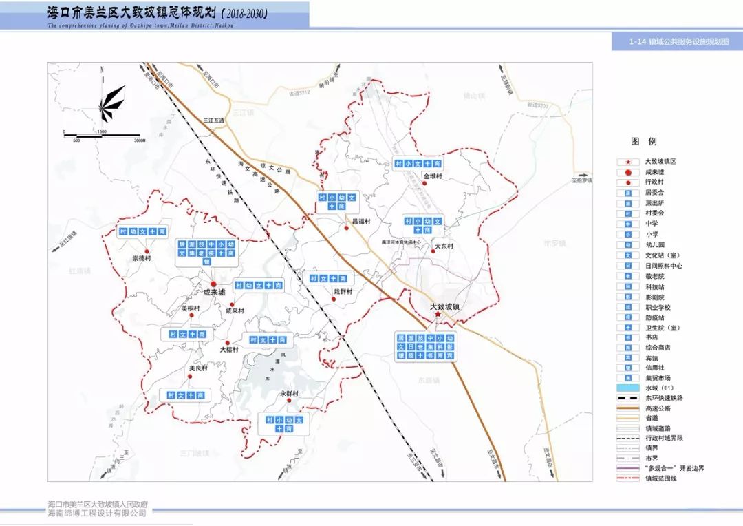 海口市美兰区住房和城乡建设局2019年10月23日《海口市美兰区大致镇总体规划(2018-2030)》规划简介 一、规划范围1.大致坡镇行政辖区范围,规划面积为115.42平方公里。2.镇区规划范围:东、南接文昌市东路镇,西邻海文高速公路,北达乌土城村。规划总用地面积778.29公顷,建设用地面积262.16公顷。二、总体发展目标依托高效绿色农业、南洋河等资源及便捷的交通优势,秉承区域产业协同发展原则,建成以商贸、“互联网+” 为支撑,以琼剧文化为底蕴,经济发达,社会和谐,生态环境一流的特色产业小城镇。三、总体发展定位打造“海澄文”一体化的重要示范区、形成琼北地区商贸服务中心、创建以琼剧文化为特色的风情小镇。