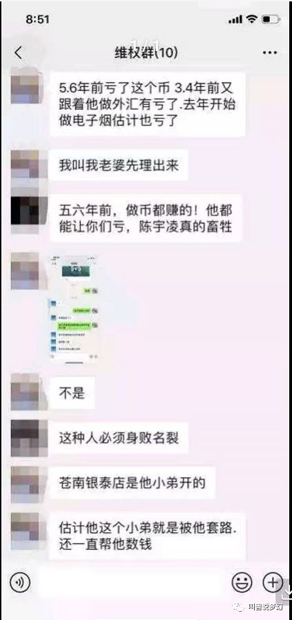 10月16日晚秋爆料的维权群聊天记录显示众位受害者,义愤填膺,对于陈无敌口诛笔伐: