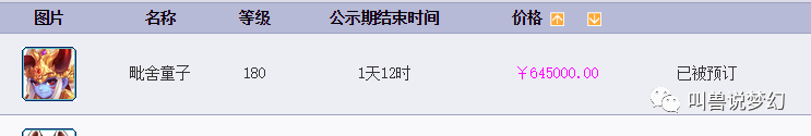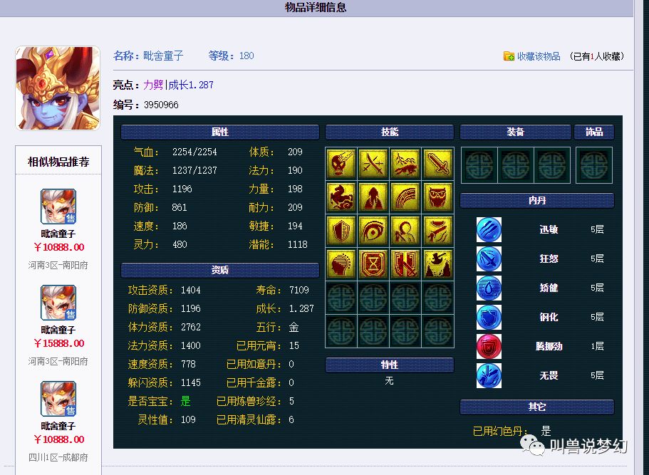 最近汴梁城上架了一只力劈+神马的童子,在上架不到五分钟就被人预定,成交价仅为645000元,这个价格真的便宜,不知道被哪位老板收入囊中。老板的一只BB都够我们这一套房了...
