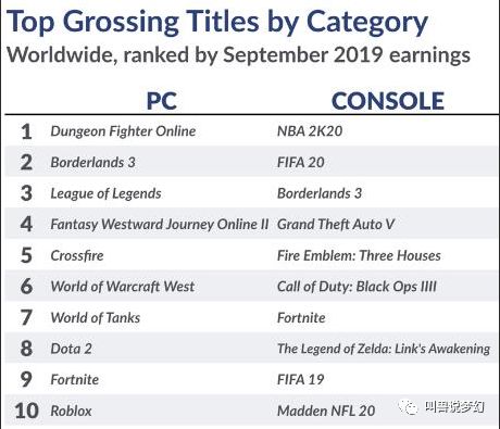 最新的全球数字游戏营收榜(端游)9月份,梦幻西游排名第四相比8月份没有变化。而魔兽世界在8月份靠怀旧服杀进第三,如今却已经被LOL取代,如今魔兽世界已经跌至第六名