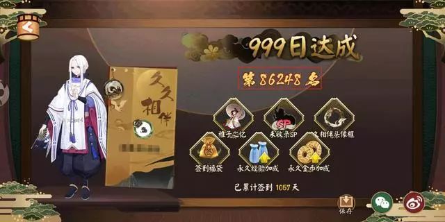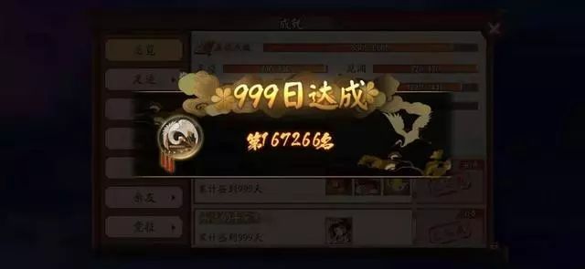 《阴阳师》里面有签到成就,这个大家应该都是知道的吧,在签到500和签到999天的时候,系统会告诉你是第几个达到这个成就的玩家,这个功能也让玩家看见有多少已经完成了这个成就。除了签到成就,征服世界的成就也会这样的提示。这应该也给玩家成就感,一个独一无二的编号代表了自己在平安京里特殊的身份,也让玩家对游戏产生归属感,这项设计值得点赞。