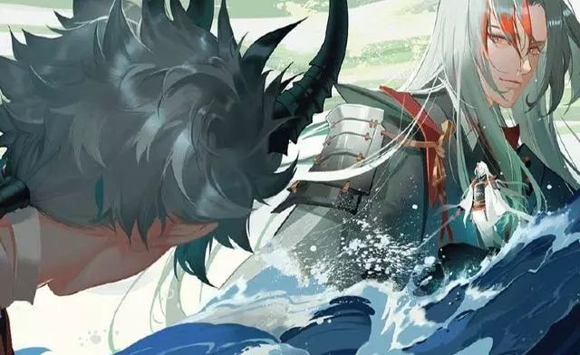 之后回合源赖光在海面上再次对决和打一架,但根据其他插画来看,源赖光意外的对海鸣 展开了攻击,借此推测可能鬼切受到了海鸣的蛊惑或者控制,又成了25仔了,而源赖光大概率是为了让鬼切清醒。
