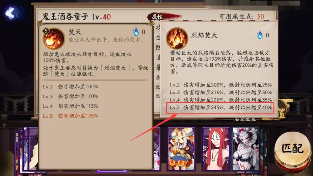 看到这里,问题就来了,要是SP酒吞在开启“鬼王姿态”的情况下配合这个5层“众矢之的”的效果,再加不知火普攻追加。那么SP酒吞鬼王姿态下普攻的主怪伤害就是:245%*2(众矢之的)*2(不知火追加)=980%,也就是近10倍的伤害加持。而溅射伤害就是980%*0.4=392%,而且溅射是真实伤害,并且是溅射全队的,也就是说是一个近4倍的群体AOE。