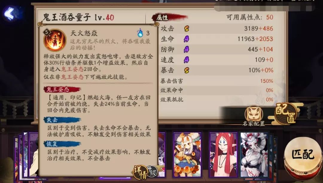 关于这两个式神整体的技能是如何的,在百鬼弈上都有明确解释,这里猫君就不再赘述了。不过重点提一下SP酒吞和星熊童子的几个新设定,首先是SP酒吞的鬼王姿态和大妖之力,大妖之力相当于是一个全队的辅助BUFF,可以增加队友的伤害和肉度;而鬼王姿态可以帮助队友免控或解控,结束时还能帮队友回血,同时能切换SP酒吞的普攻效果。