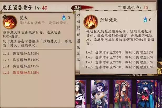 (满级后追加:姿态结束时,为友方全体恢复生命,等同自身在鬼王姿态期间所造成的伤害的20%。友方受到灼烧后,若生命比例低于30%,解除所有控制效果)