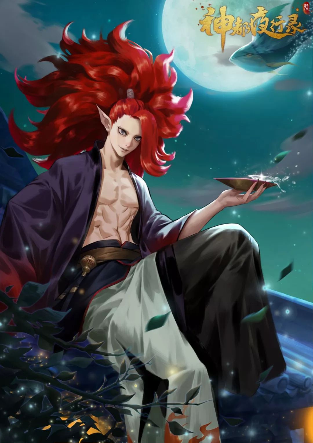 发如灼灼烈焰,背倚鬼葫芦,傲气凛人的「大江山鬼王」——酒吞童子!