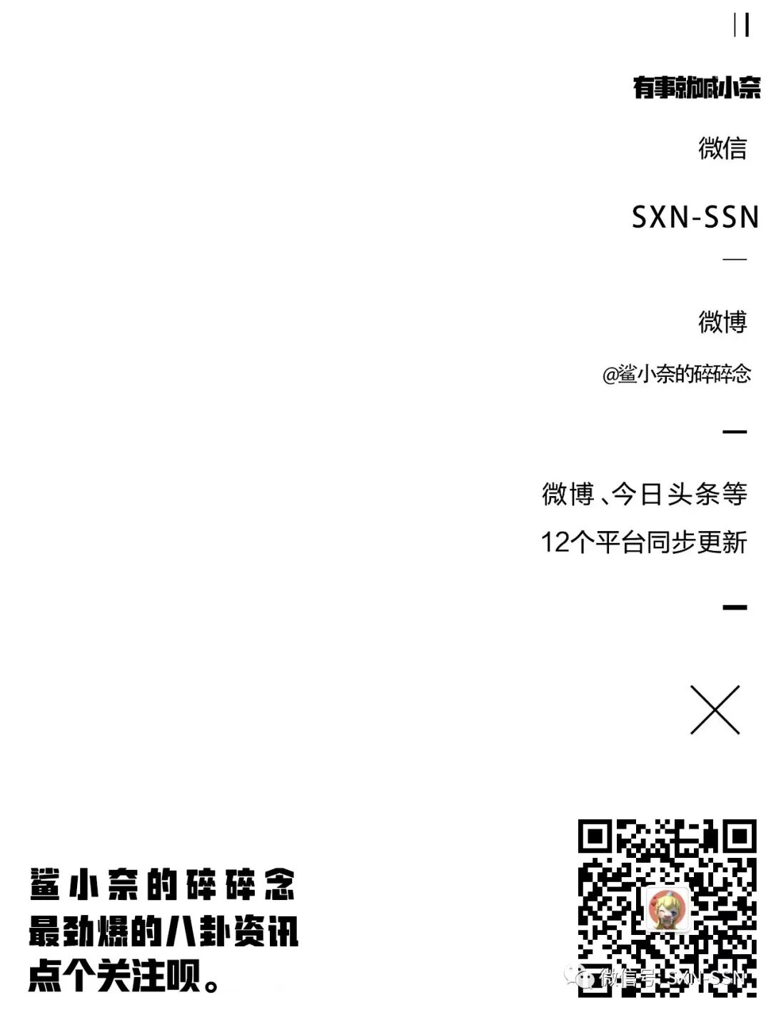鲨小奈的碎碎念悬赏计划开始啦!如果你有劲爆的最新八卦爆料,欢迎投稿至我们的邮箱:1406971452@qq.com,如被采纳的八卦爆料,我们将送上20-60元的悬赏金额作为奖励。小奈期待你的投稿哦~