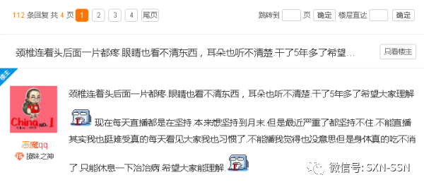 不过高强度的直播在带给观众欢乐的同时也给恶魔QQ的身体健康敲响了警钟,近日恶魔QQ在鱼吧发出一条请假公告,透露自己现在颈椎疼痛,眼睛和耳朵也出现了问题,本来希望坚持到月末再说,但身体已经顶不住了,只有暂时休息去看看病,希望大家能理解一下。