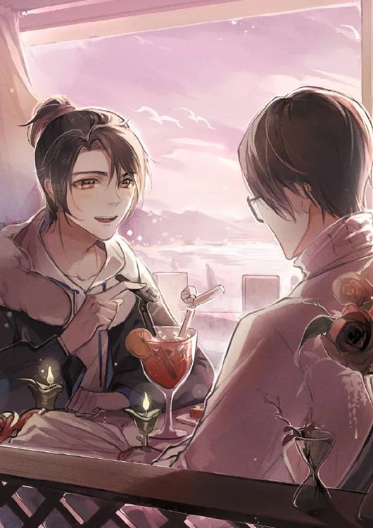 两个人好不容易有时间出来逛街,当然是要来一场浪漫的约会了。他们两人正坐在窗前开心的聊着什么,饮料是一个亮点。汪叽温柔的看着羡羡,虽然没有说话,但是忘羡之间的气氛也在无形中发狗粮。